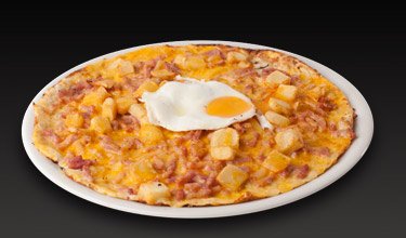 Véritable cheddar de Grande-Bretagne, oignons rouges, lardons français cuisinés et pommes de terre. Servie avec son œuf français sur le plat.