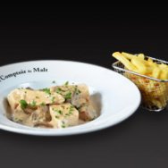 Les filets de poulet français à la normande, frites - Le menu + l'entrée